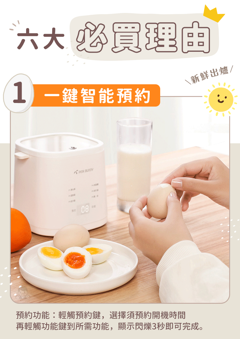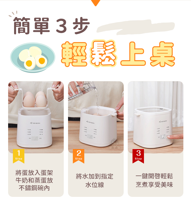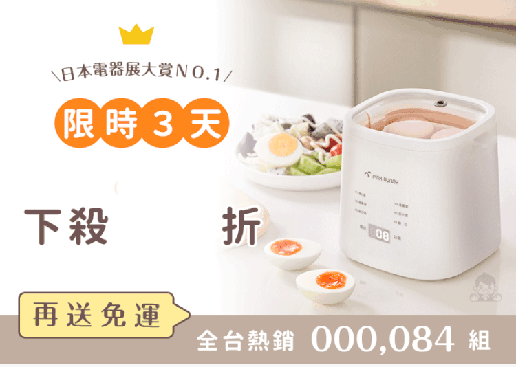 半小時前Pink Bunny智能煮蛋機智能控溫烹煮,營養美味輕鬆上桌 - Pink Bunny智能煮蛋機1入組 NT$1090